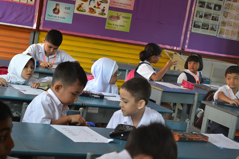 Ammar dah masuk darjah 1.....Asyraf lak dah 6 tahun....Ammar kami antar sekolah agama dekat sekolah Ad-Daris kat Bukit Jelutong...sekolah agama dia pagi sebab sesi sekolah kebangsaan dia belah petang...Ammar sekolah kat sekolah yg semakin femes....Sekolah Kebangsaan Bukit Jelutong.....mmg pemes skg skolah ni...menjadi rebutan dan pojaan ramai....bayangkan ada 10 kelas darjah satu...setiap kelas ada purata 43 org murid....fuhsss...pasti mencabar cikgu2 nak memantau neh.....aku tgk skolah2 sekitar yg lain dalam 2-3 kelas jer....dan lam setiap kelas tak lebih 30 org pun....nape eks semua mak bapak nak antar kat SKBJ neh....cam kami antar ke situ sebab tu je antara skolah terdeka ngan umah...yg paling dekat la tu kot....sebab skolah kat kawasan kejiranan kami lum muncul2 pun....tapi dekat tak dekat gak ler....jarak lebih kurang 10km gak tuh......